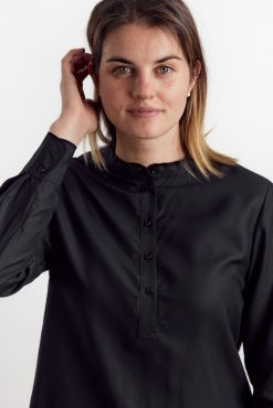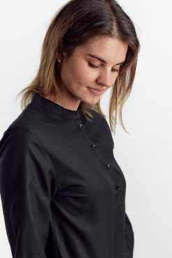 - Dame skjorte med lille kinakrave og stolpelukning.