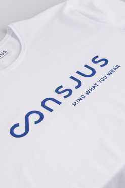 - Med CONSJUS logo print i blå på brystet
