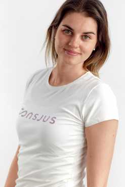 - Med CONSJUS logo print på brystet i blush glitter pink.